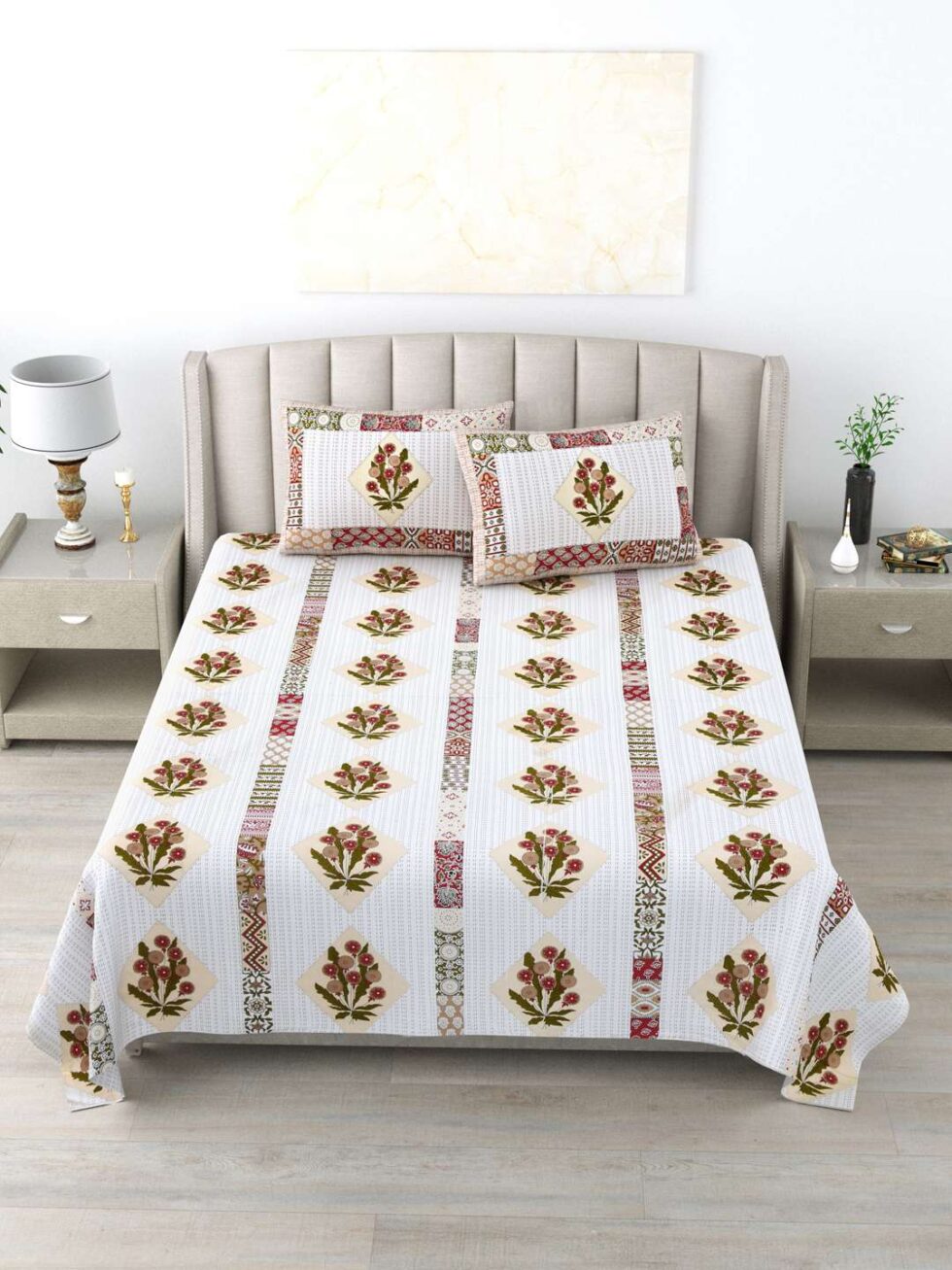 100% Pure Cotton Traditional Printed Bedsheet for Double Bed King Size Bedsheet with 2 Pillow Covers