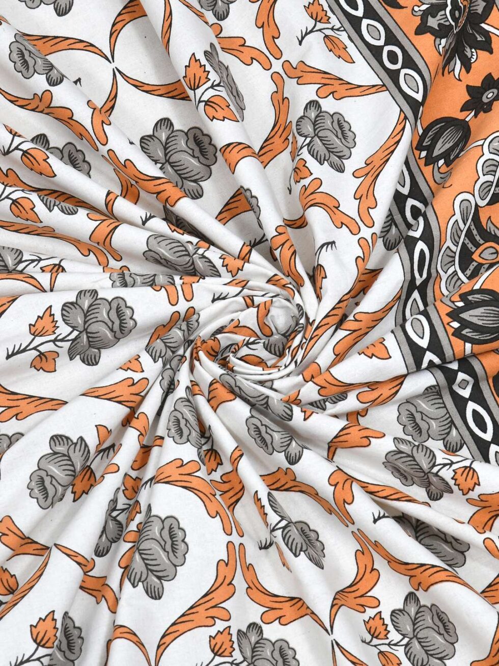 100% Pure Cotton Traditional Printed Bedsheet for Double Bed King Size Bedsheet with 2 Pillow Covers
