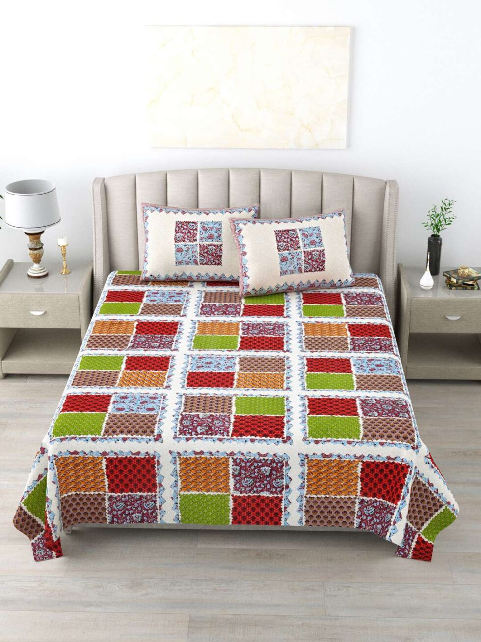 100% Pure Cotton Traditional Printed Bedsheet for Double Bed King Size Bedsheet with 2 Pillow Covers