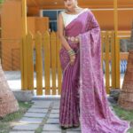 Drape yourself in luxury with this Pure Soft Silk Saree, exquisitely adorned with beautiful thread handwork. It showcases an elegant floral design complemented by a sophisticated cutwork border, creating a harmonious and graceful look. The saree features this elegant design meticulously spread all over, ensuring a stunning appearance. This timeless piece, perfect for any special occasion, is available for β‚Ή4,899.00.